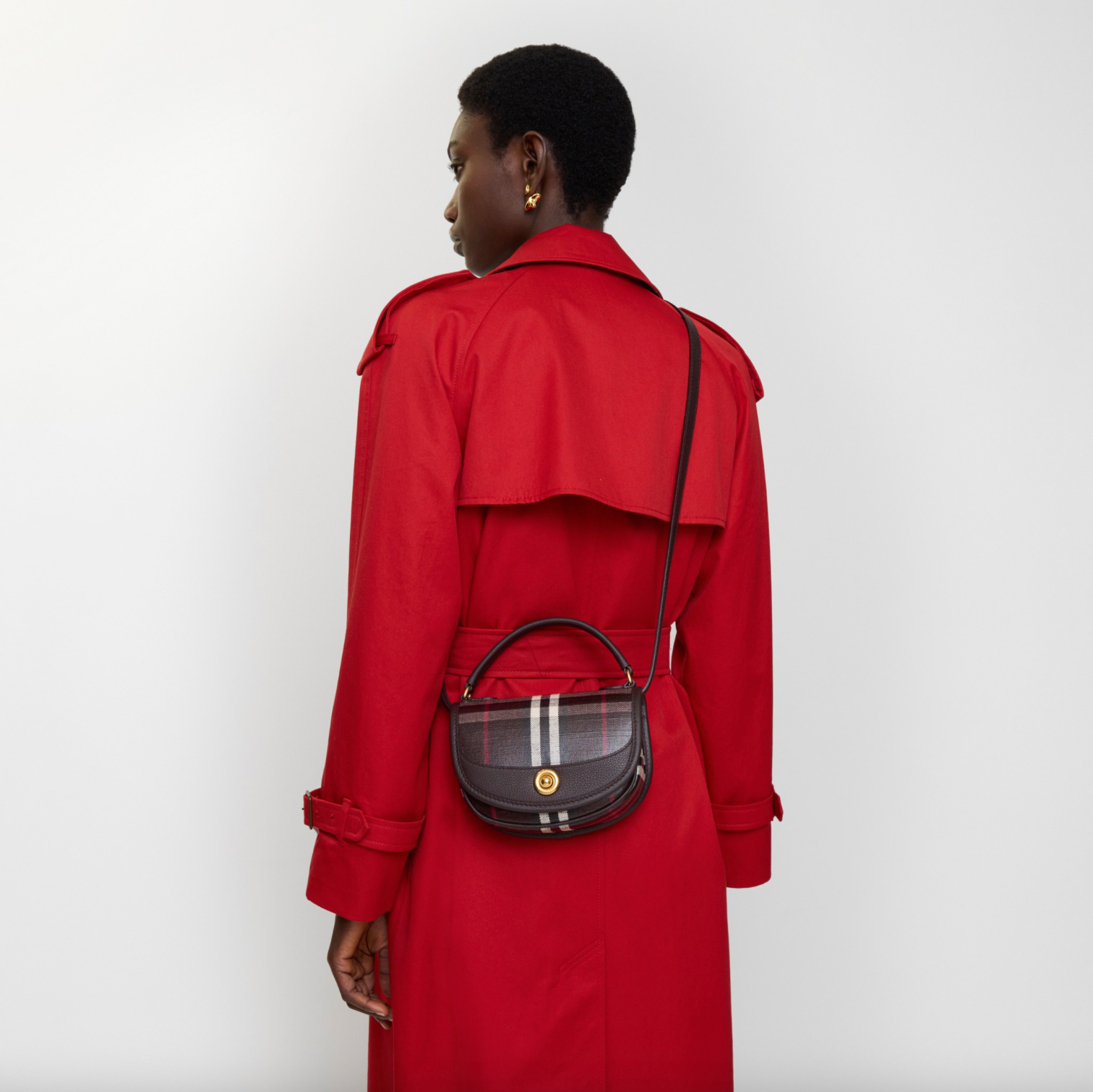 Inspiré par le plein air, ce sac compact est confectionné en Italie dans un mélange de coton et de lin, bordé de cuir de veau lisse et doublé de coton. Son design présente un tissage jacquard à carreaux Burberry Check et une finition enduite évoquant les vêtements de pluie. Portez-le par la poignée ou en bandoulière grâce à la sangle ajustable.