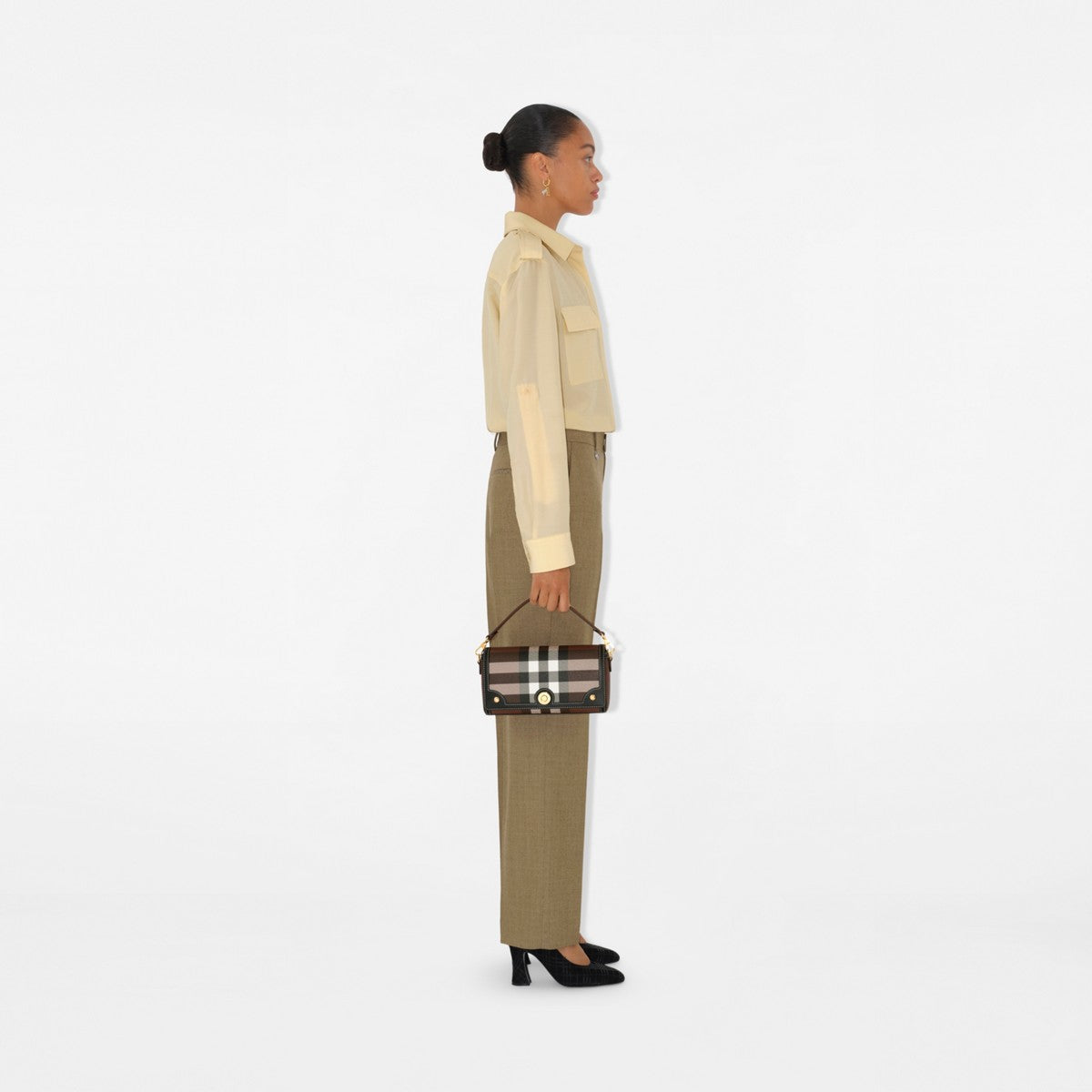 Inspiré de nos archives, ce sac à bandoulière est confectionné en Italie dans un mélange de coton enduit à carreaux Burberry Check, avec une doublure unie. Le modèle présente des finitions en cuir de veau lisse et un fermoir gravé de notre logo. Portez-le en bandoulière ou à l'épaule grâce à la sangle amovible.