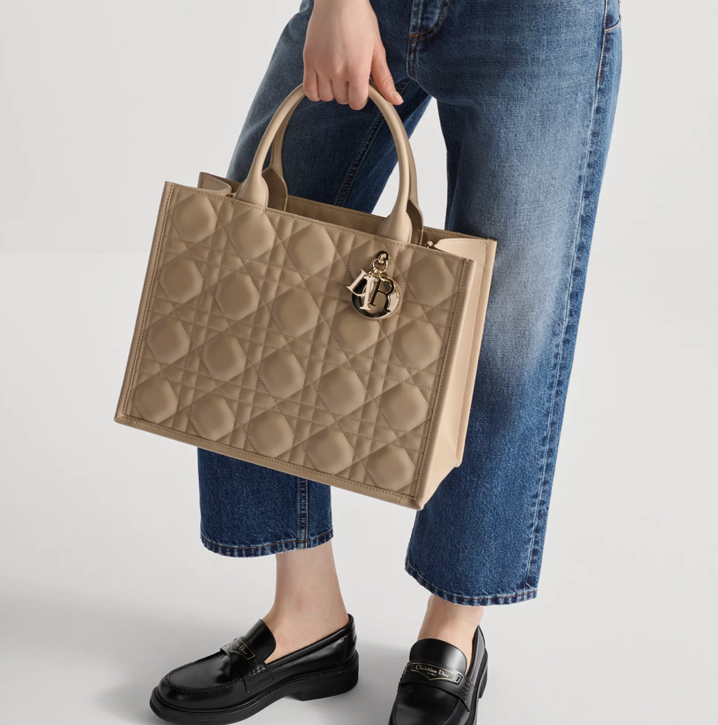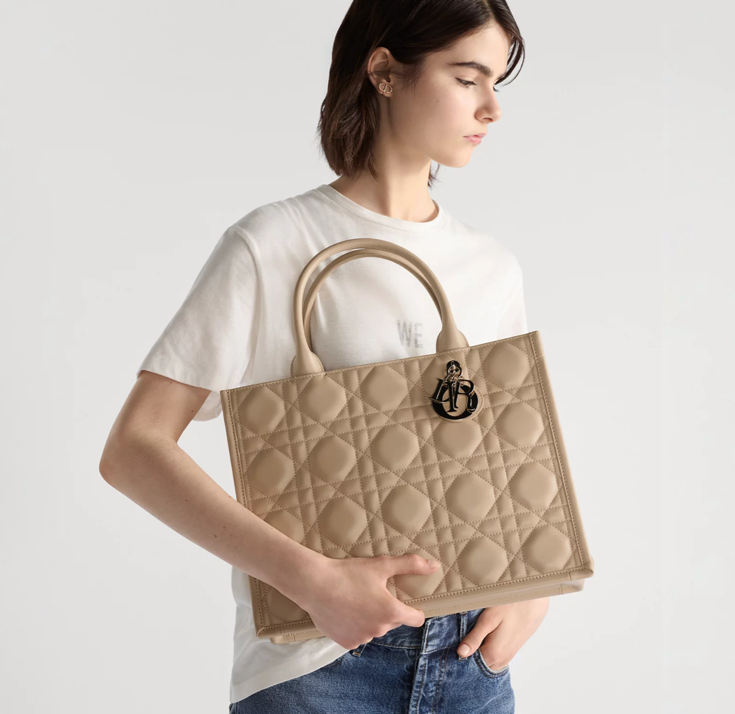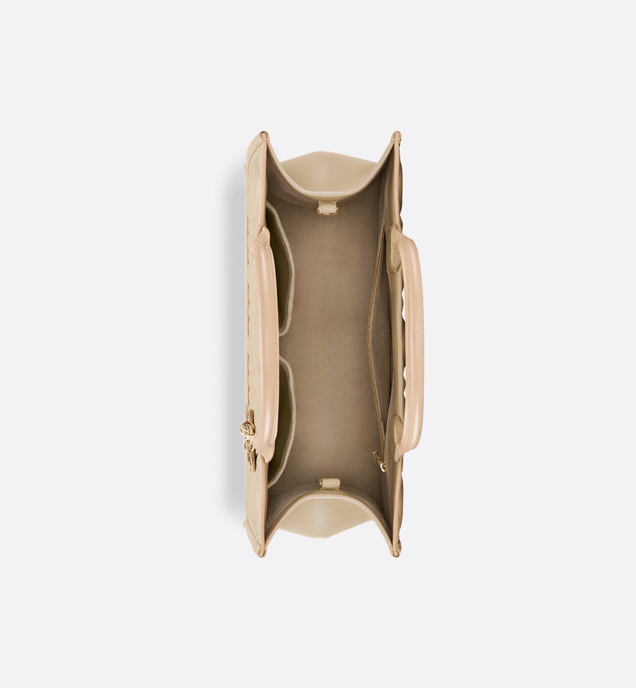 Le Dior Book Tote est désormais un classique de la Maison. Ce modèle Medium en cuir de veau beige poudre met à l'honneur le motif Macrocannage, sublimé par les charms D.I.O.R. en métal doré pâle sur le devant. Imaginé pour organiser tous vos essentiels du quotidien, son intérieur en cuir cachemire dévoile une poche zippée et des poches plaquées. Doté d'une bandoulière ajustable et amovible, ce cabas léger et fonctionnel est un bel exemple du savoir-faire Dior et se portera main ou épaule.