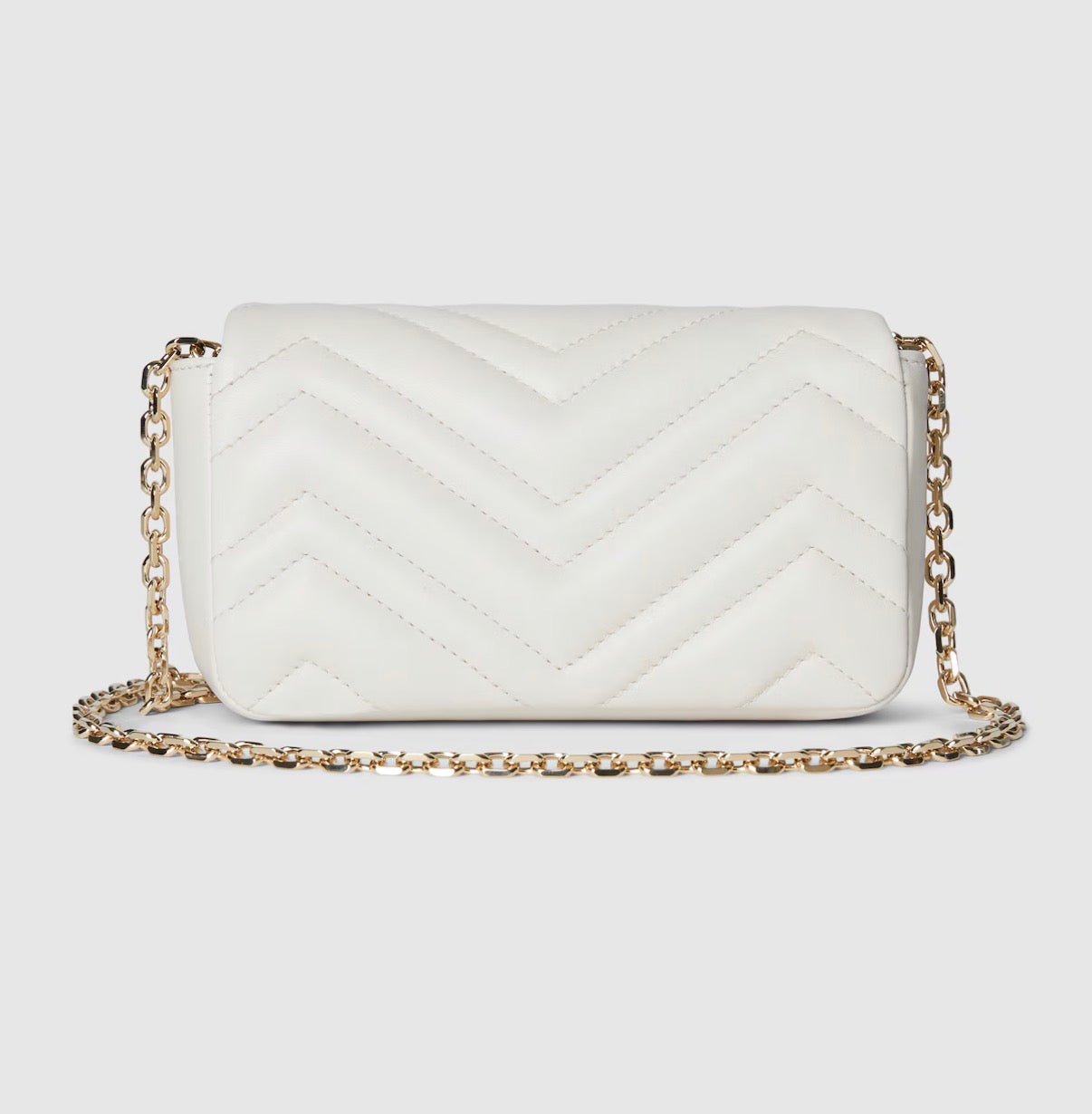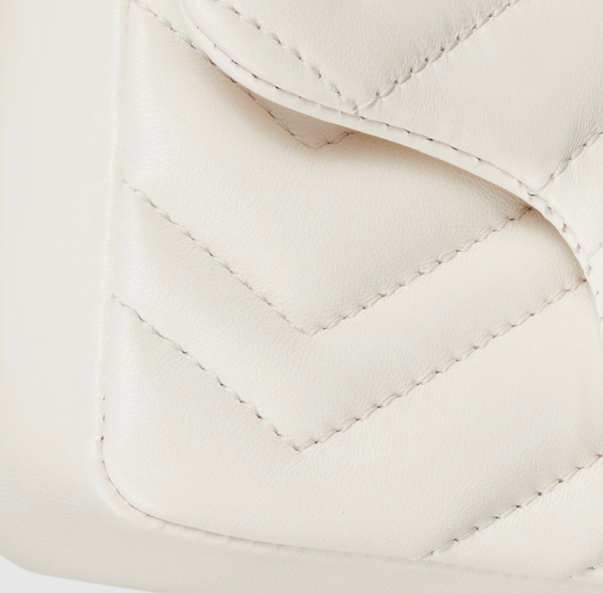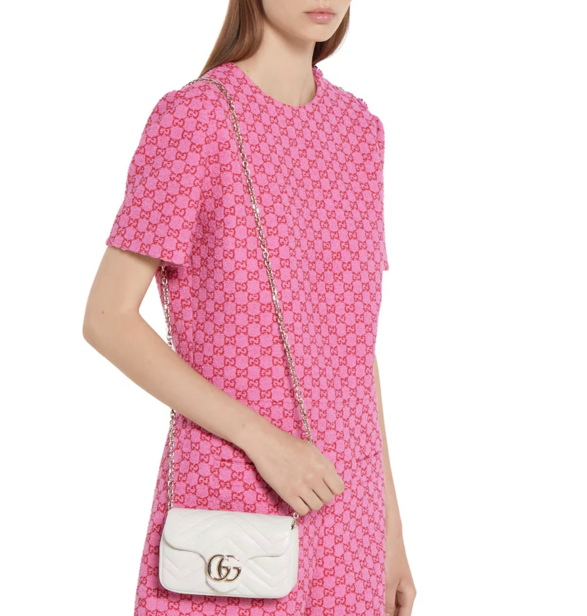 La collection GG Marmont emblématique de la Maison se caractérise par le détail Double G, une bandoulière chaîne à facettes et une construction en cuir exceptionnellement souple. Ce sac mini format est orné du logo issu des archives, introduit pour la première fois dans les années 70.