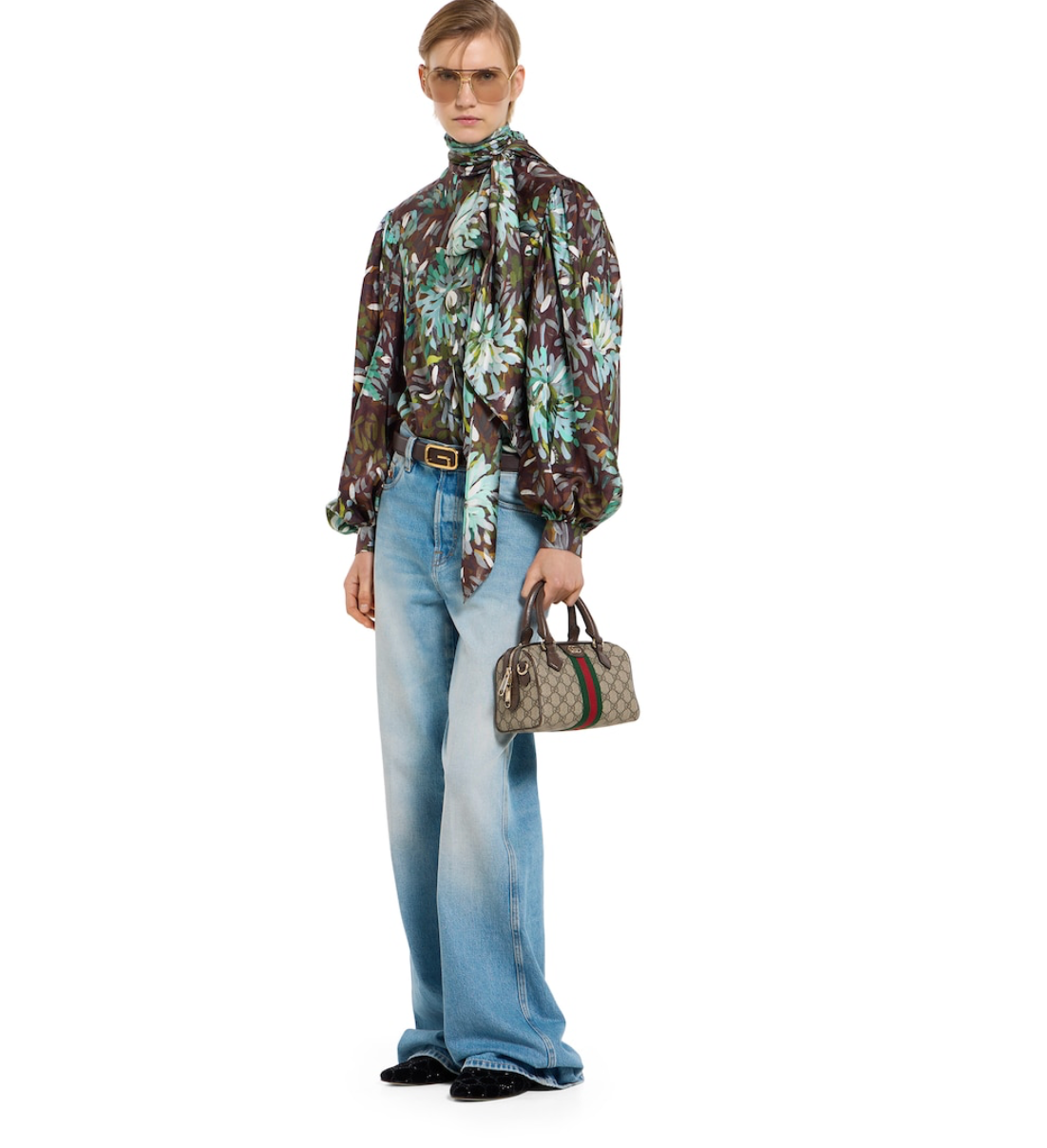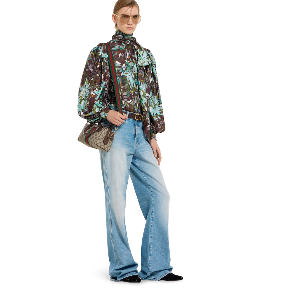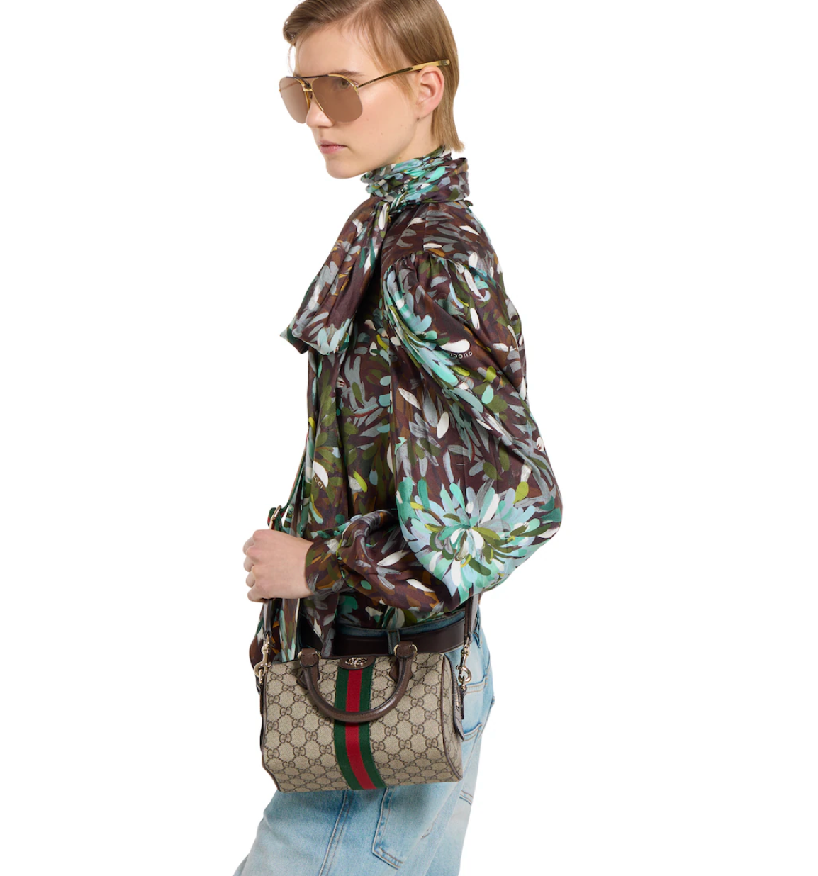 La collection Ophidia évoque l’héritage de la Maison avec la bande Web signature et l’emblème Double G en finition doré clair. Ce modèle est confectionné dans un tissu GG Monogram enduit souple, avec doublure en coton vert à l’intérieur.