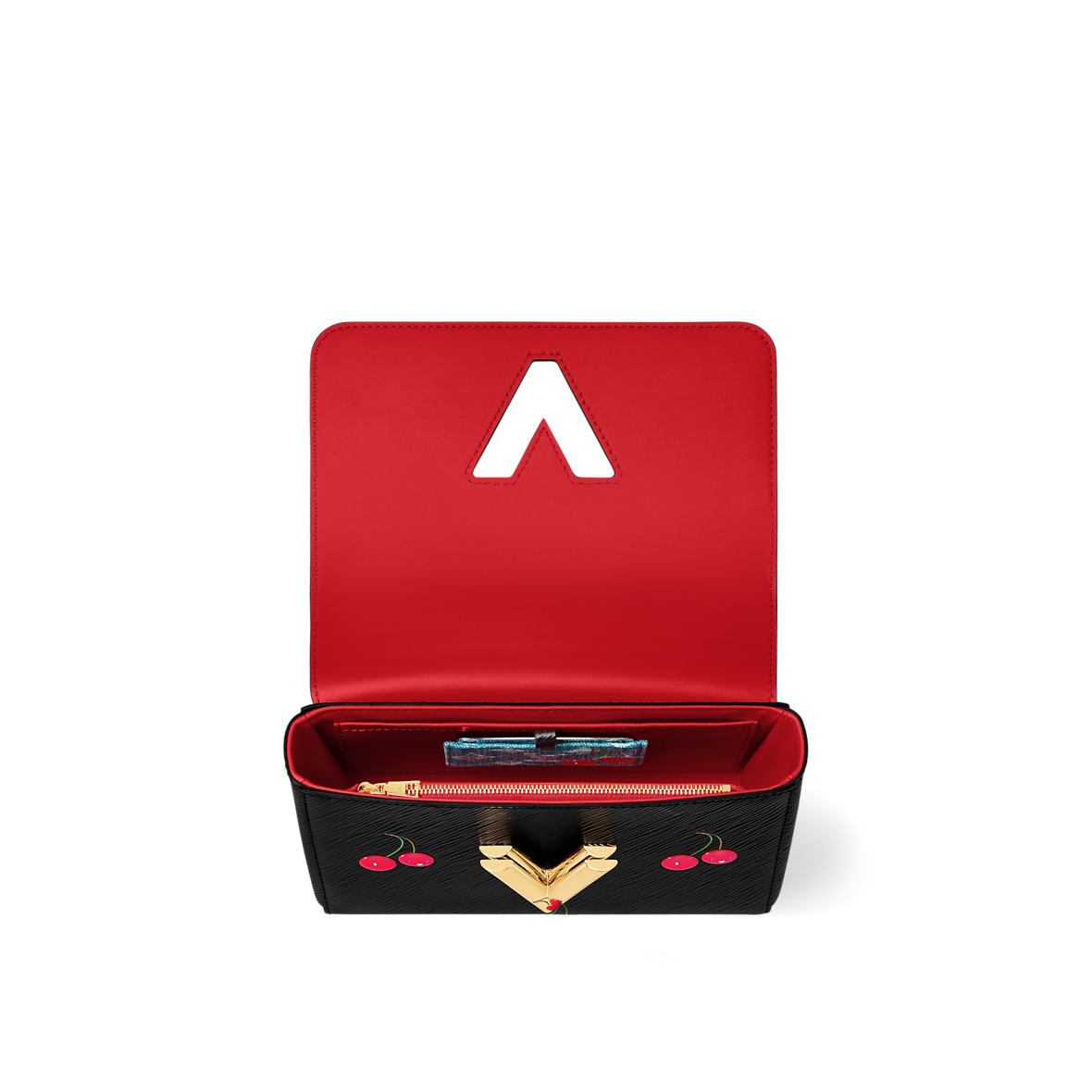 Le sac à main Twist MM est élégamment réinventé dans le cuir de vache grainé Epi texturé signature de la Maison, détaillé avec des motifs de cerise ludiques dans le style exubérant de l'artiste japonais de renommée mondiale Takashi Murakami. Le matériel aux tons dorés ajoute une touche chic et polie, y compris un embellissement de chaîne décorative et l'emblématique serrure LV Twist. L'intérieur est organisé avec deux poches et peut accueillir les essentiels quotidiens, y compris un smartphone et un long portefeuille.